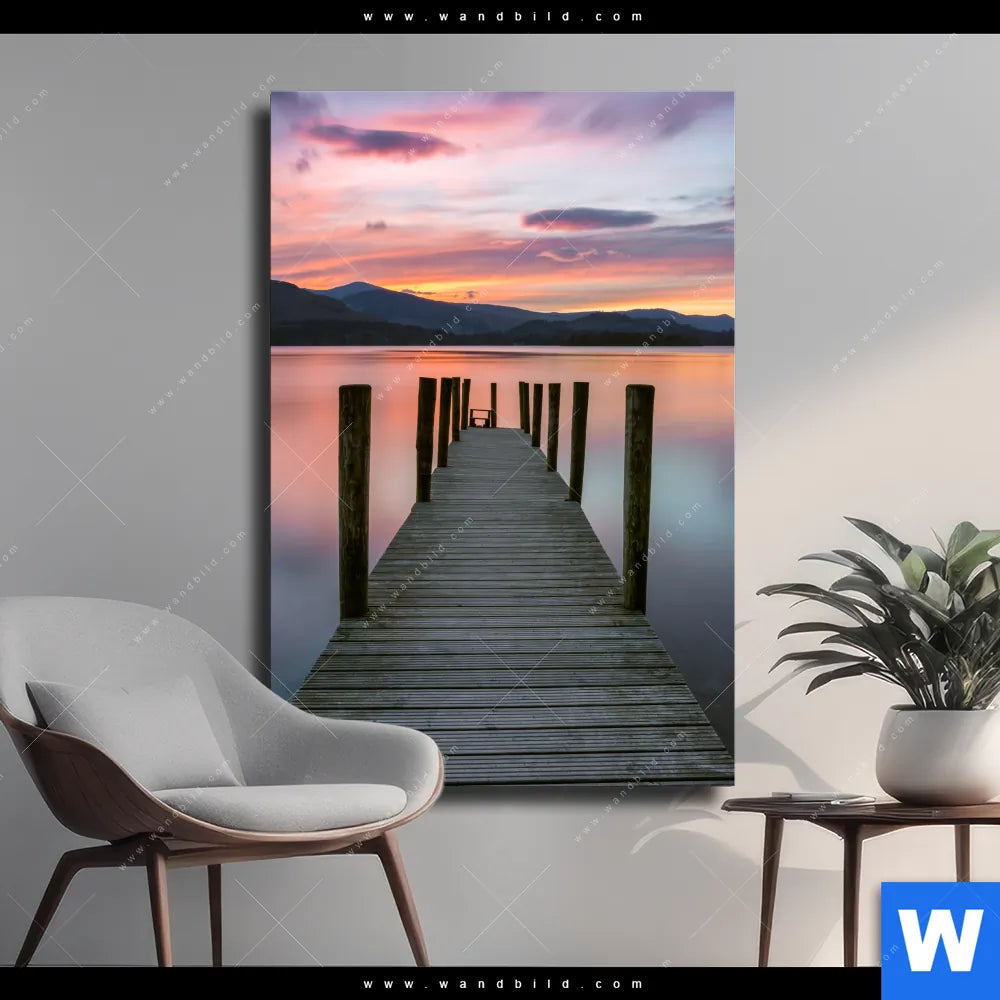Leinwandbild | Steg in den Sonnenuntergang | Hochformat