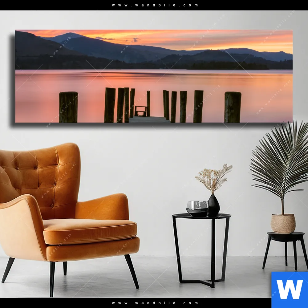 Leinwandbild | Steg in den Sonnenuntergang | Panorama