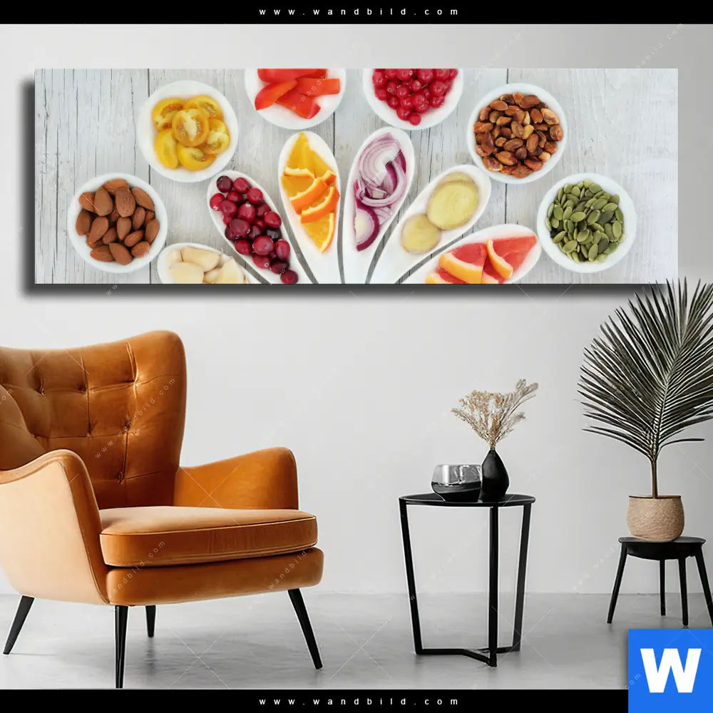 Leinwandbild | Superfoods im Farbkreis | Panorama