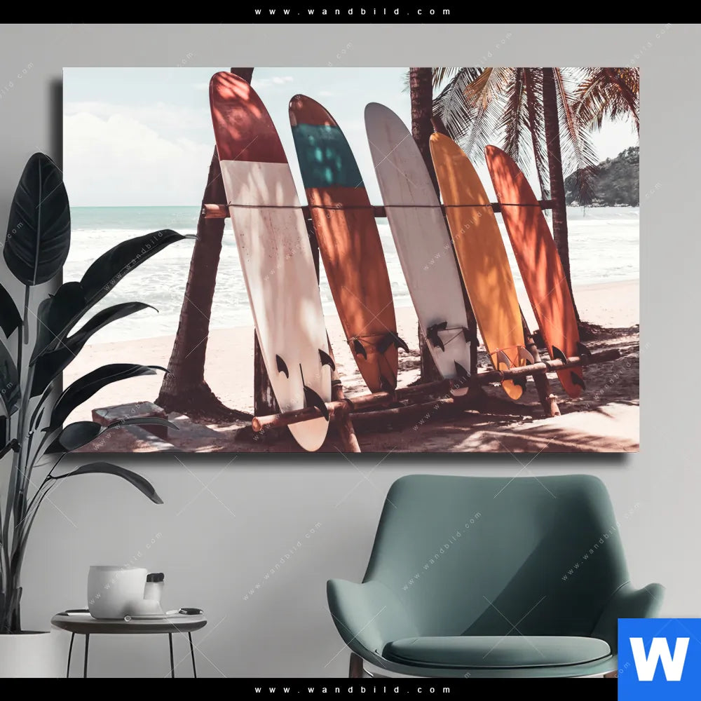 Leinwandbild | Surfbretter und Palmen | Querformat