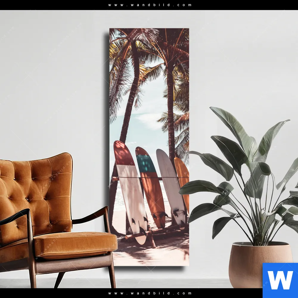 Leinwandbild | Surfbretter und Palmen | Schmal