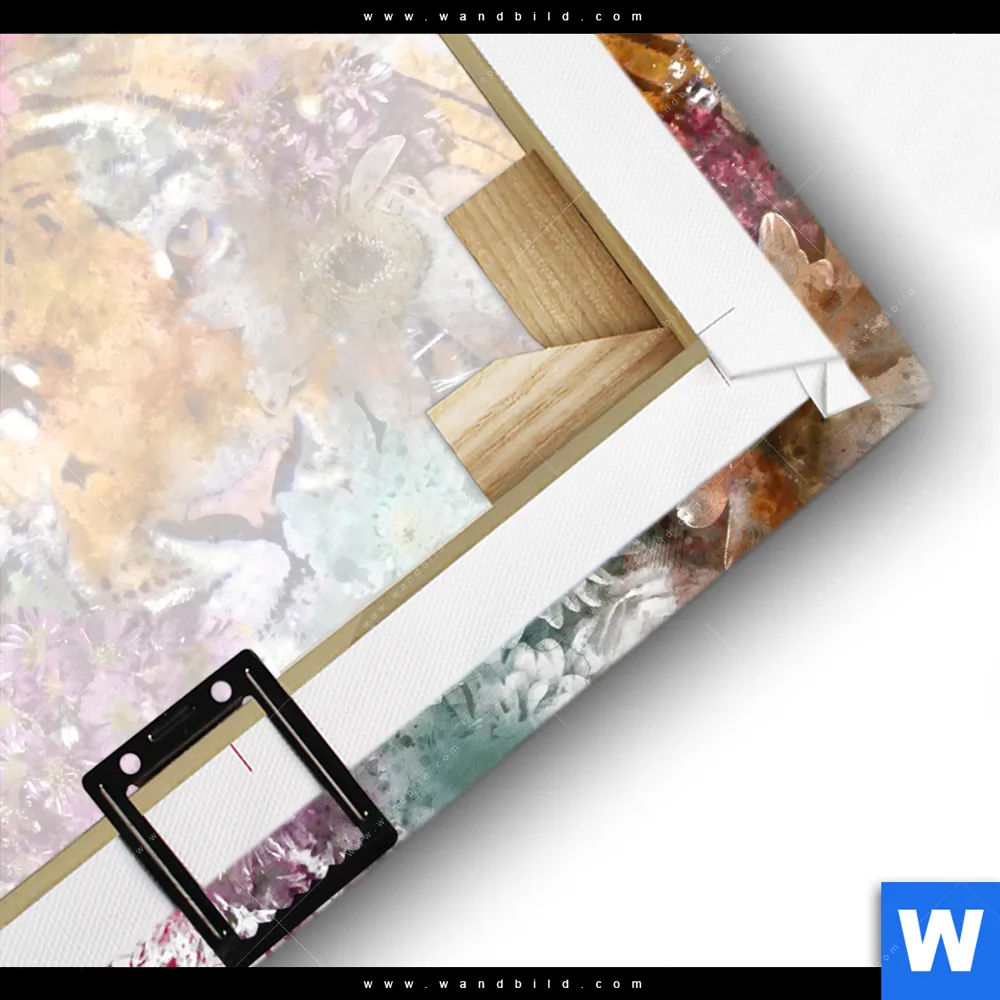 Leinwandbild | Tiger & Blumen | Quadrat