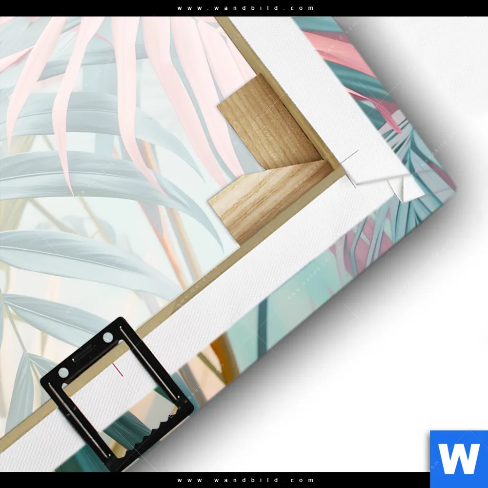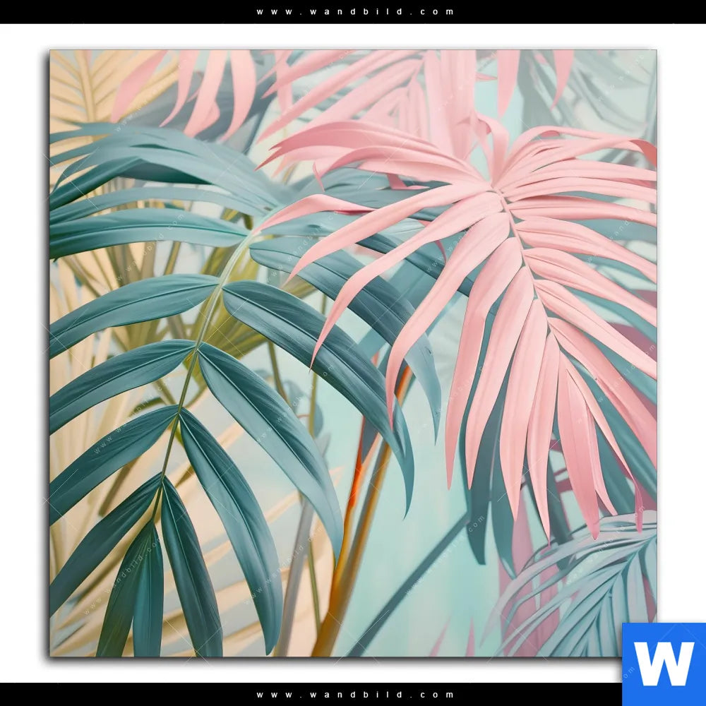 Leinwandbild | Tropische Blätter in Pastellfarben | Quadrat