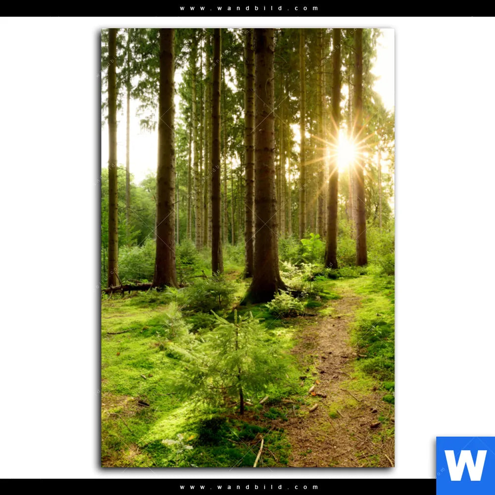 Leinwandbild | Wald mit Sonnenstrahlen No.2 | Hochformat