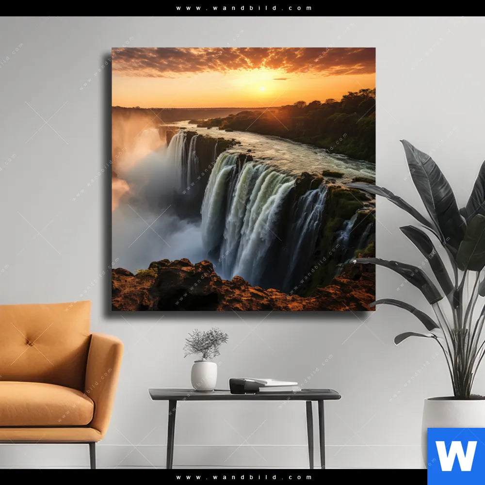 Leinwandbild | Wasserfall bei Abendsonne | Quadrat