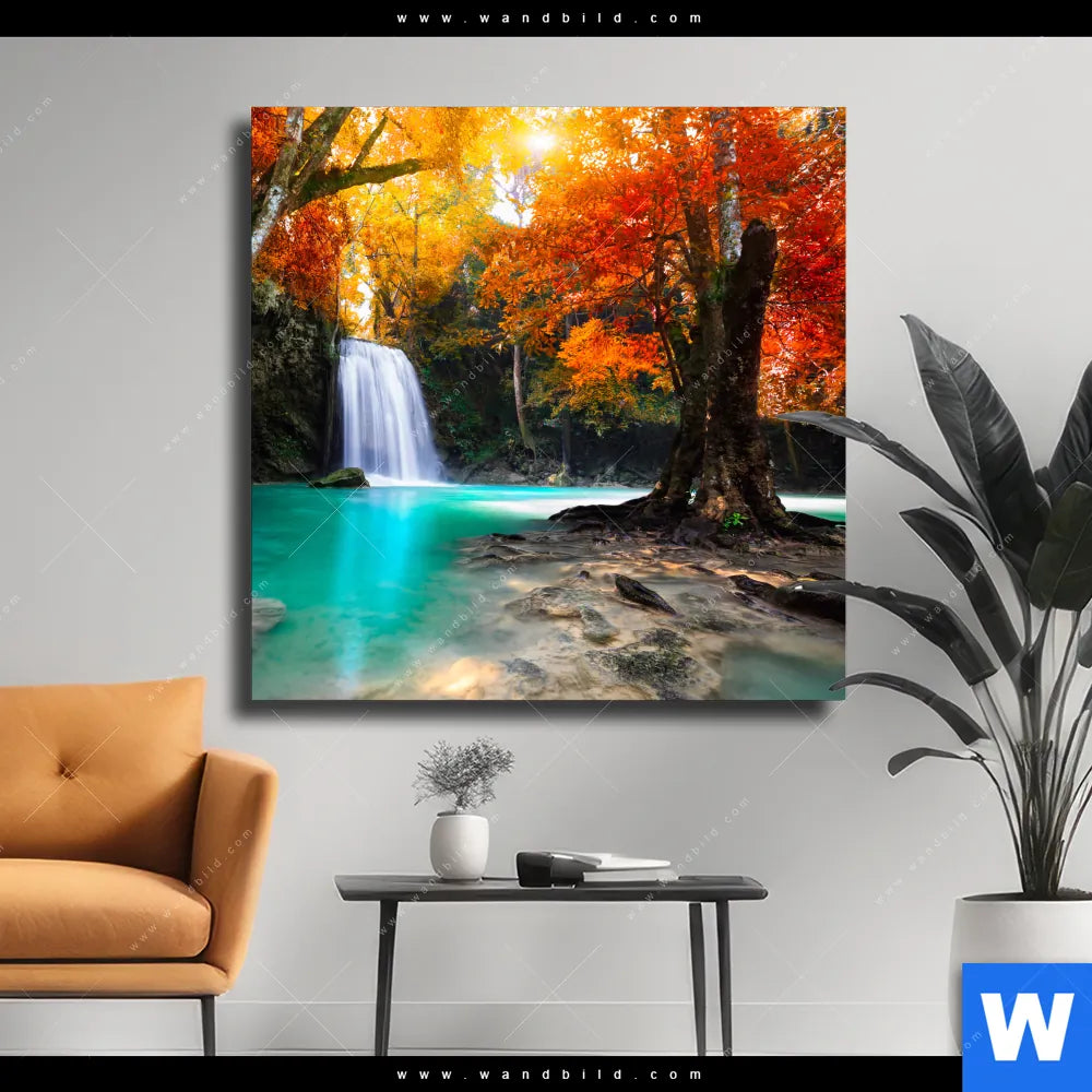 Leinwandbild | Wasserfall im Wald | Quadrat
