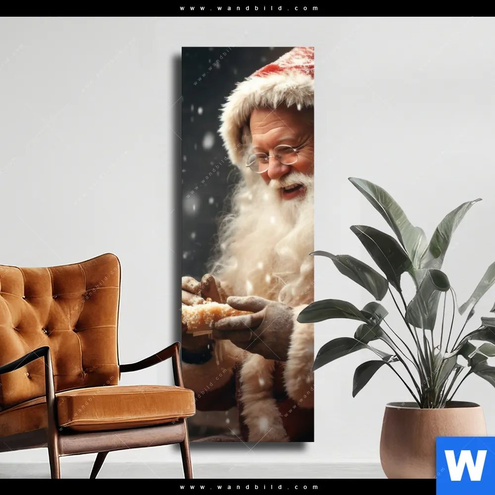 Leinwandbild | Weihnachtsmann füttert Rentier | Schmal