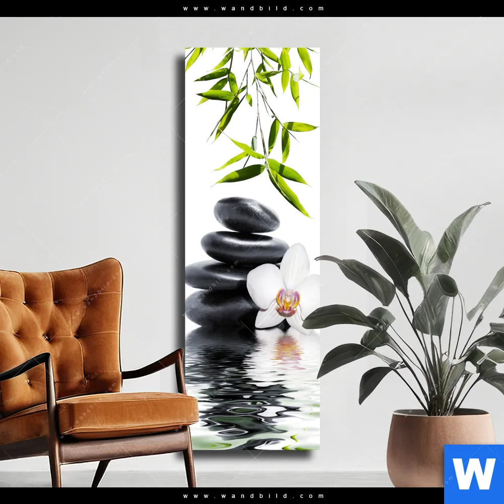 Leinwandbild | Weiße Orchidee & Zensteine | Schmal