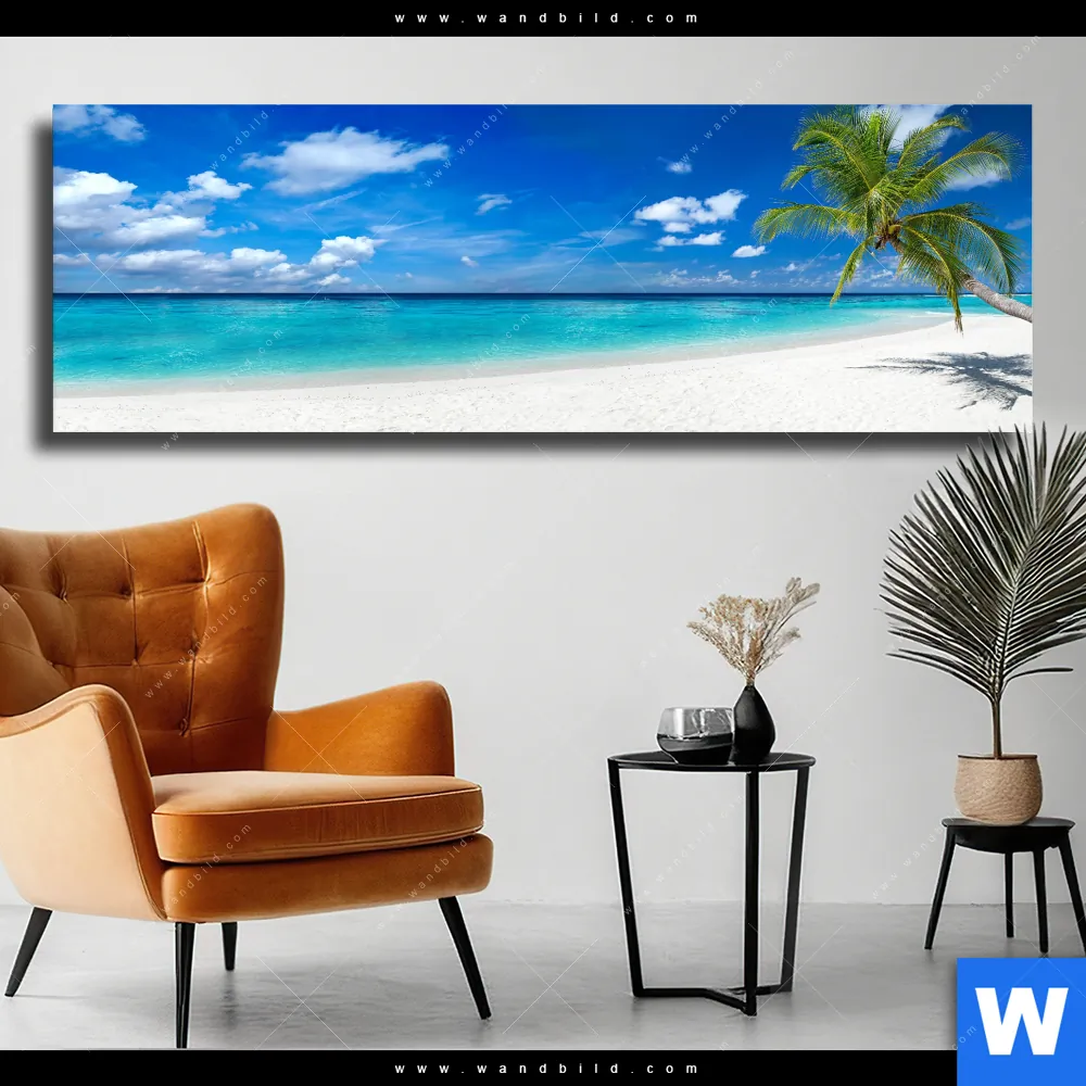 Leinwandbild | Weißer Strand & Kokospalme | Panorama