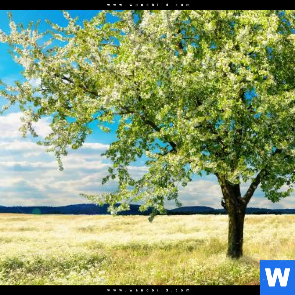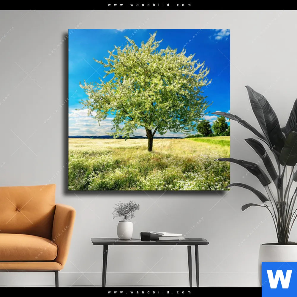 Leinwandbild | Wiese mit blühendem Baum | Quadrat