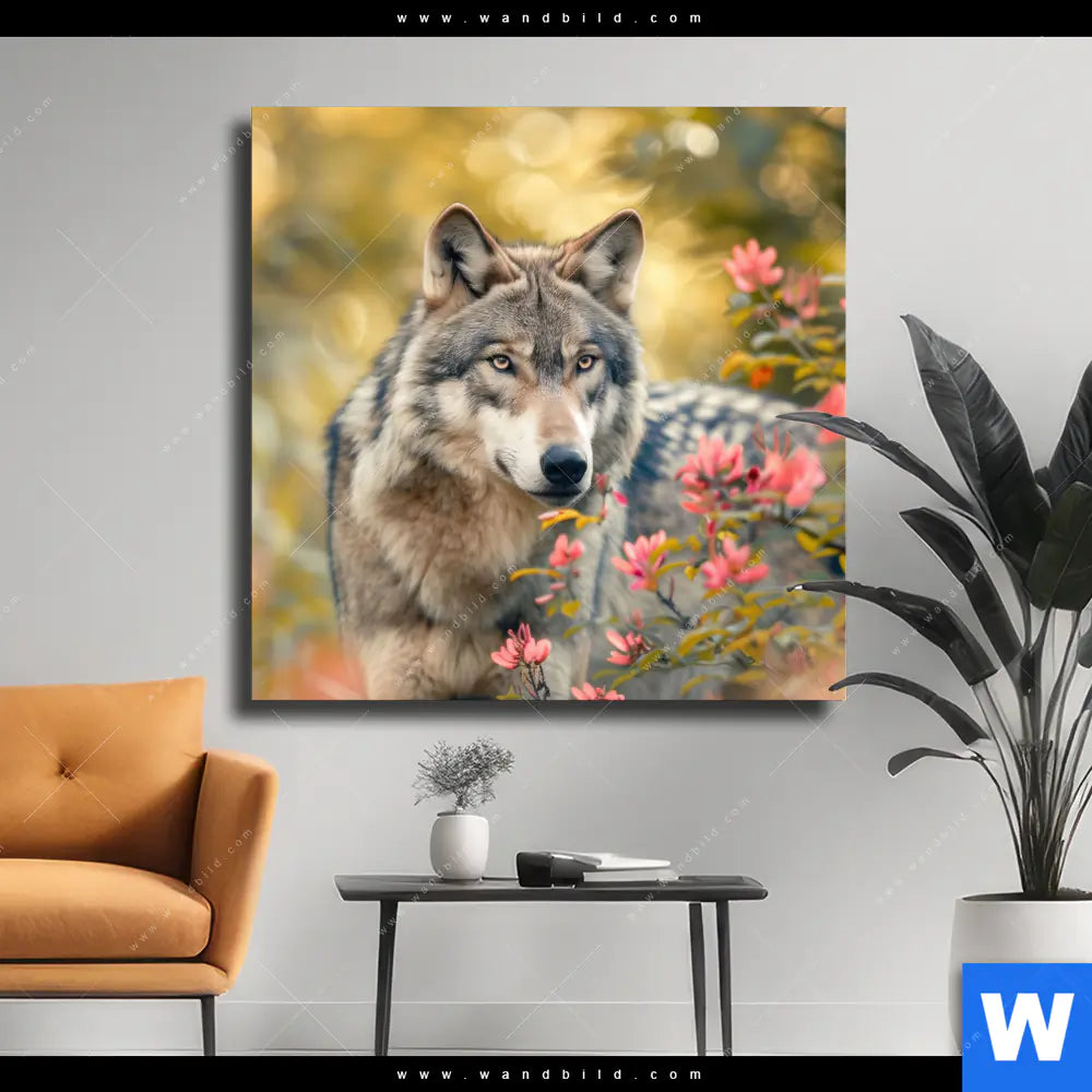 Leinwandbild | Wolfsblick im Frühling | Quadrat