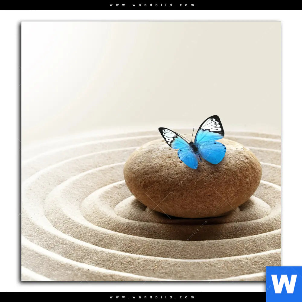 Leinwandbild | Zen Stein mit Schmetterling | Quadrat