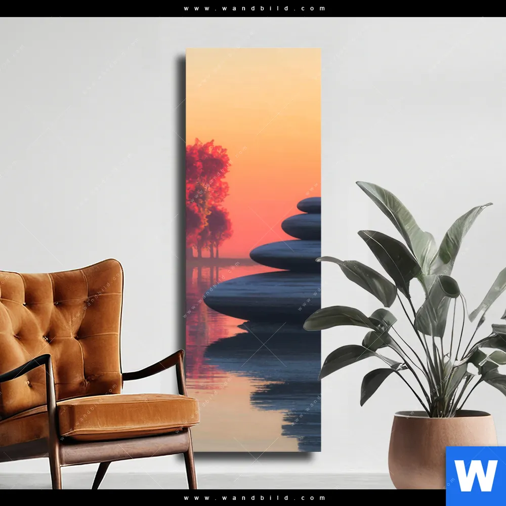 Leinwandbild | Zen Steine & Sonnenuntergang | Schmal