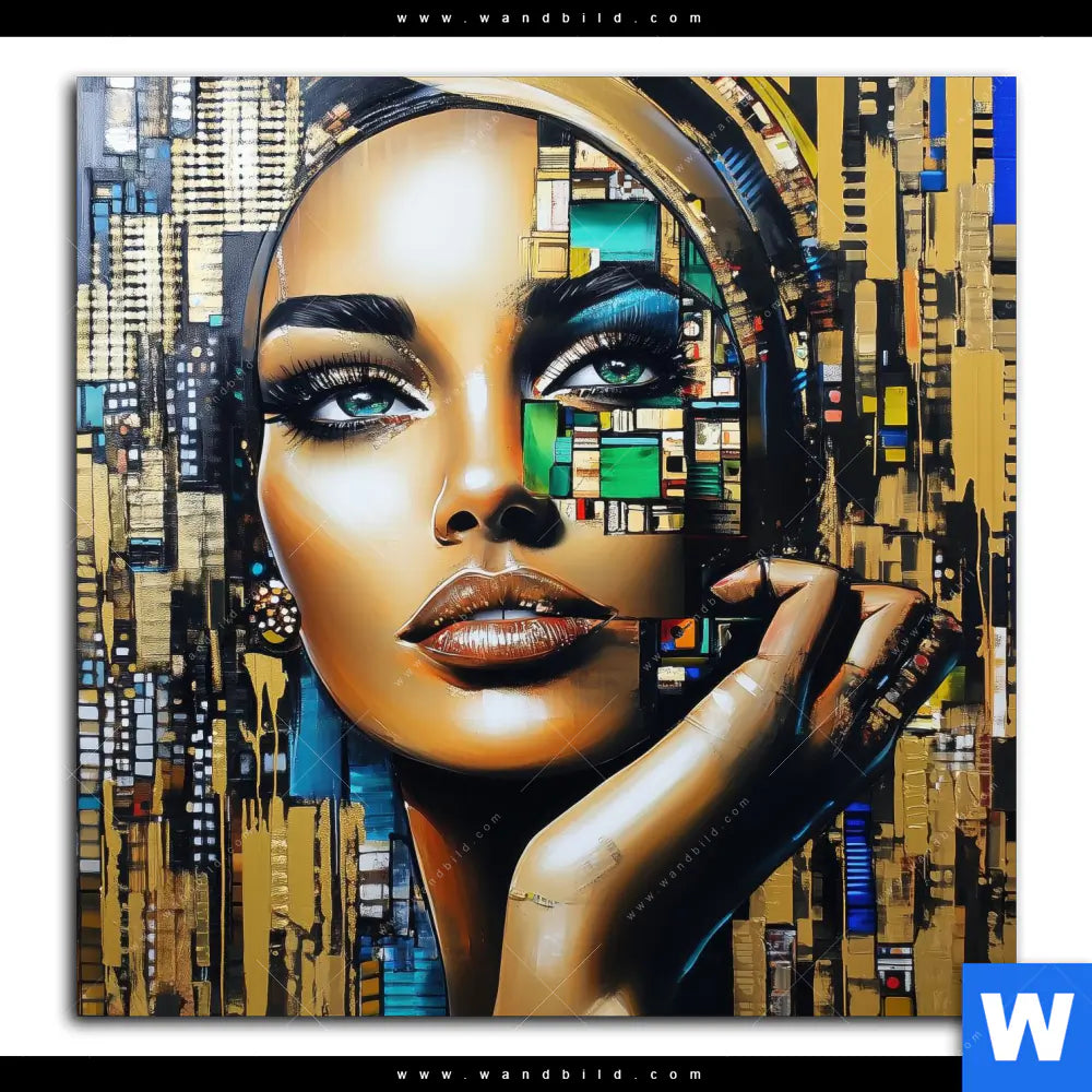 Leinwandbild | Zoe - Mosaikgesicht im Großstadtlicht | Quadrat