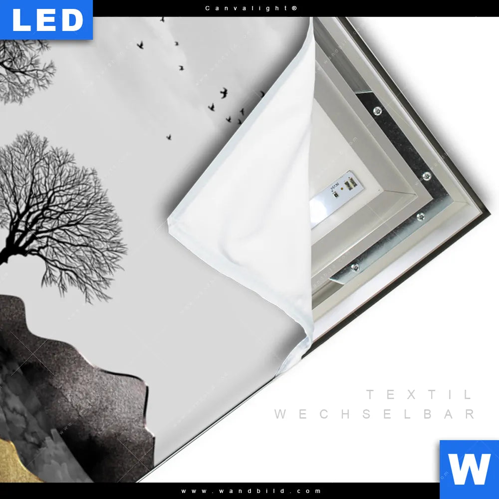 LED-Textilrahmen-Bild mit austauschbarem Landschaften Textil-Druck (Wechselbild)