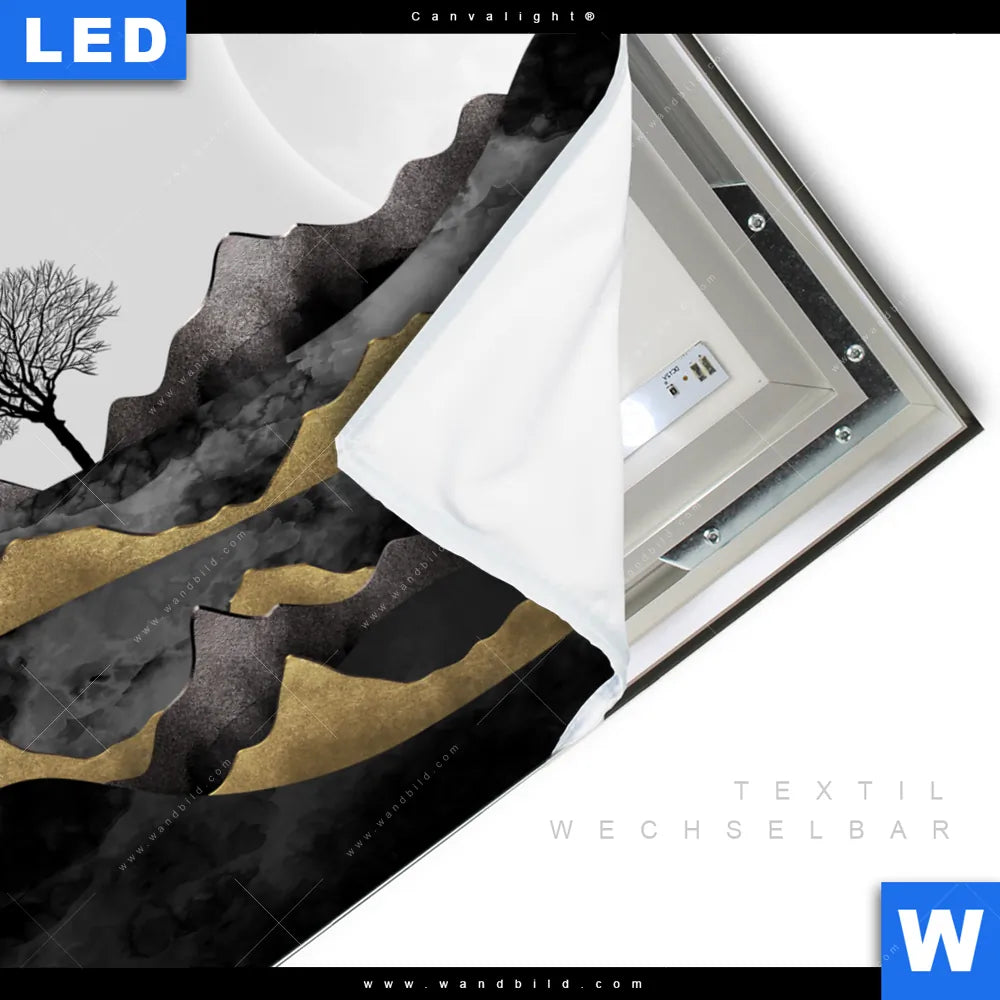 LED-Textilrahmen-Bild mit austauschbarem Landschaften Textil-Druck (Wechselbild)