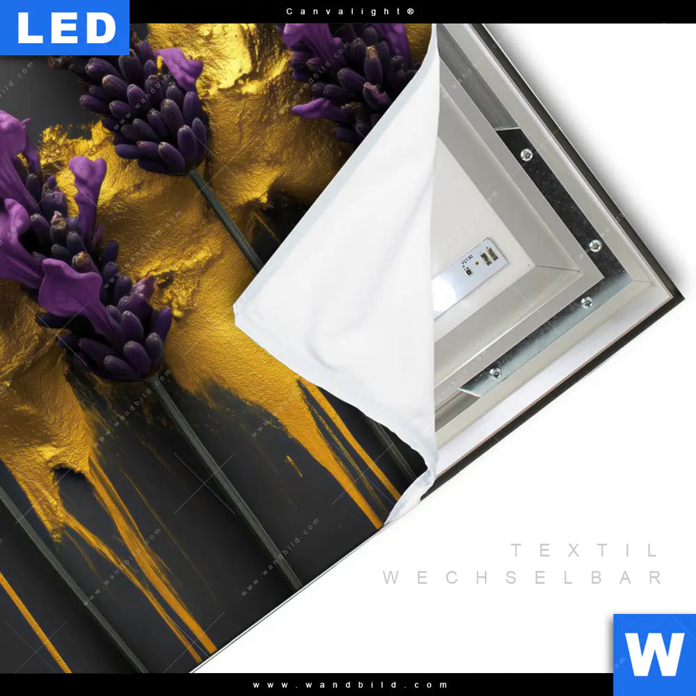 LED-Textilrahmen-Bild mit austauschbarem Blumen - Botanik Textil-Druck (Wechselbild)
