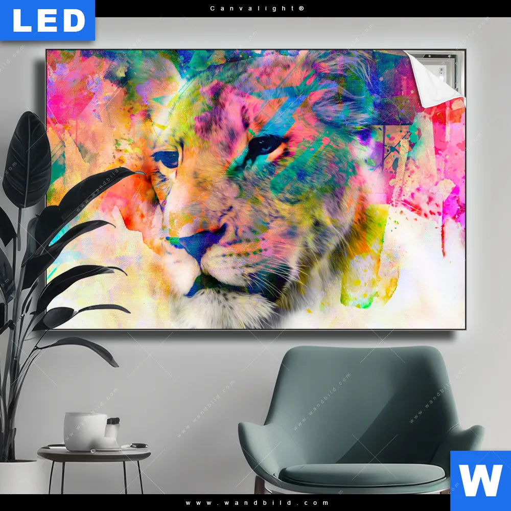 Canvalight® TEX Leuchtbild | Abstrakte Löwin | Querformat