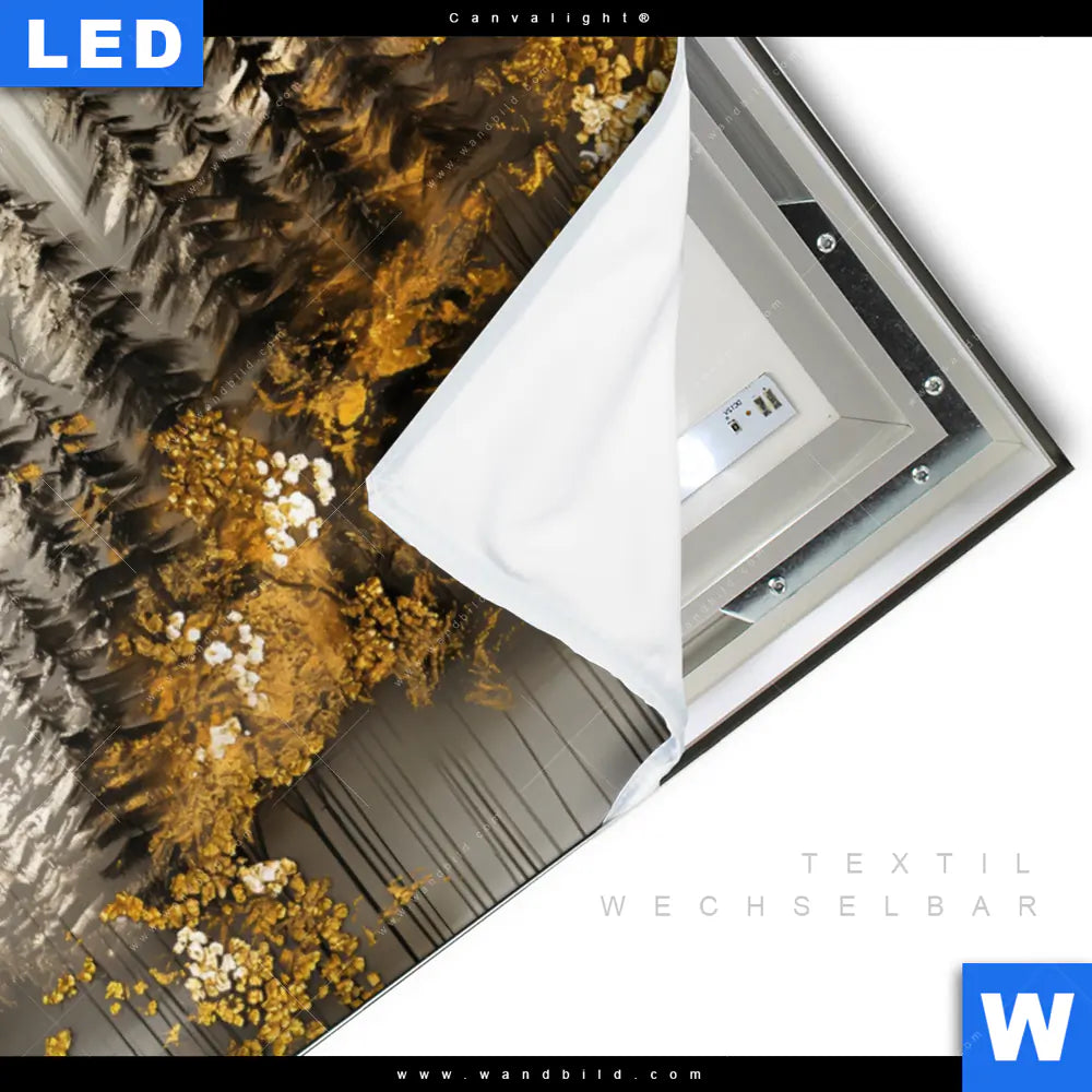 LED-Textilrahmen-Bild mit austauschbarem Landschaften, Wald - Bäume Textil-Druck (Wechselbild)