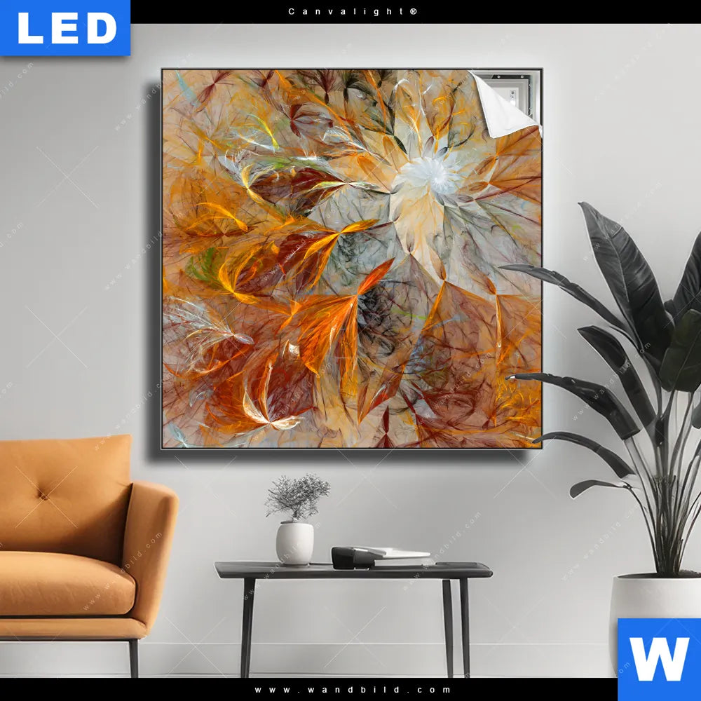 Canvalight® Leuchtbild | Abstrakter Blütenzauber in orange | Quadrat