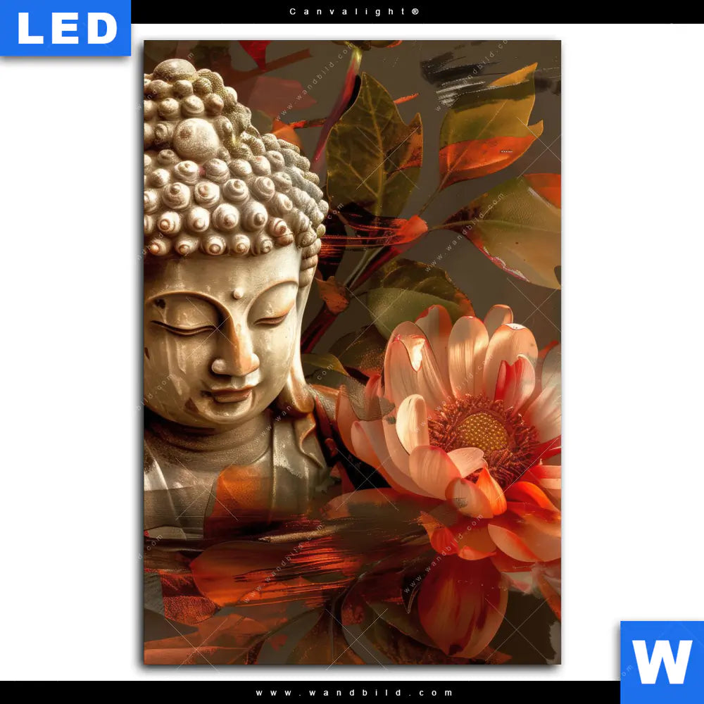 Canvalight® Leuchtbild | Abstrakter Buddha & Blumen | Hochformat