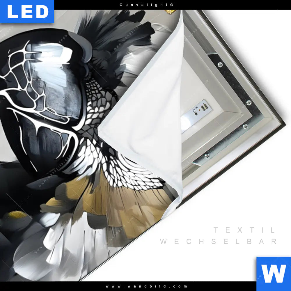 Canvalight® TEX Leuchtbild | Abstrakter Papagei mit Gold | Hochformat