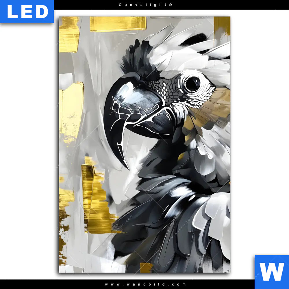 Canvalight® Leuchtbild | Abstrakter Papagei mit Gold | Hochformat