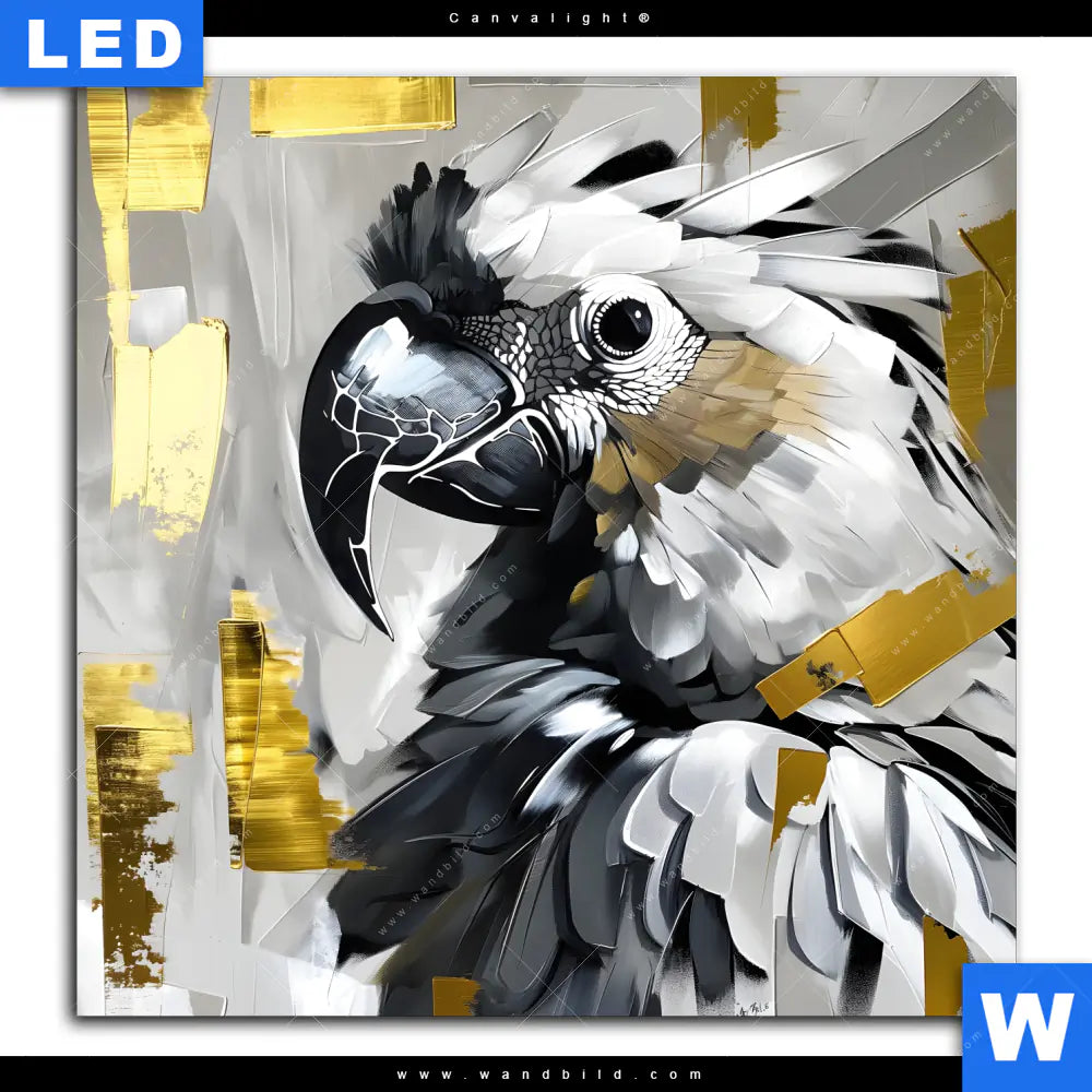 Canvalight® TEX Leuchtbild | Abstrakter Papagei mit Gold | Quadrat