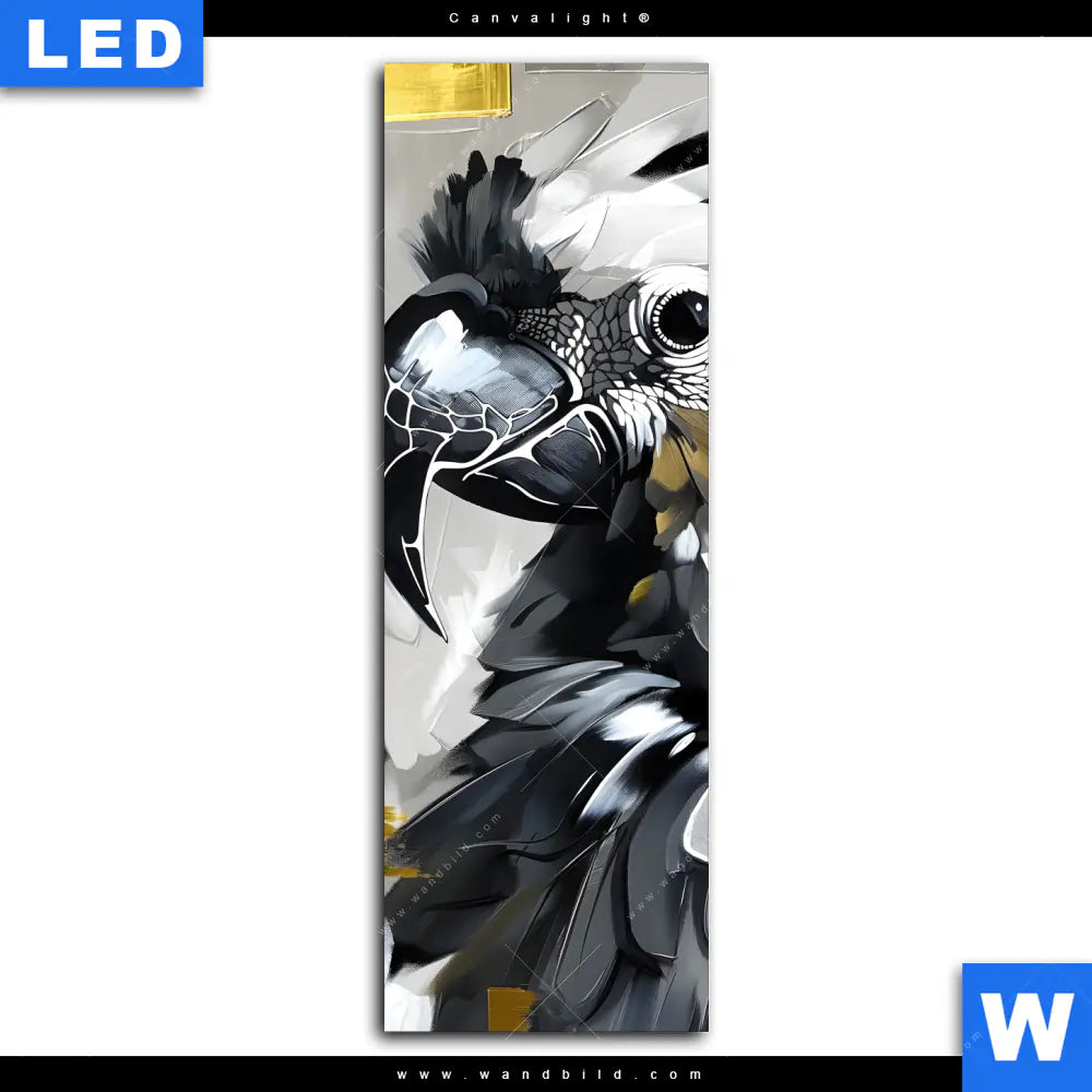 Canvalight® Leuchtbild | Abstrakter Papagei mit Gold | Schmal