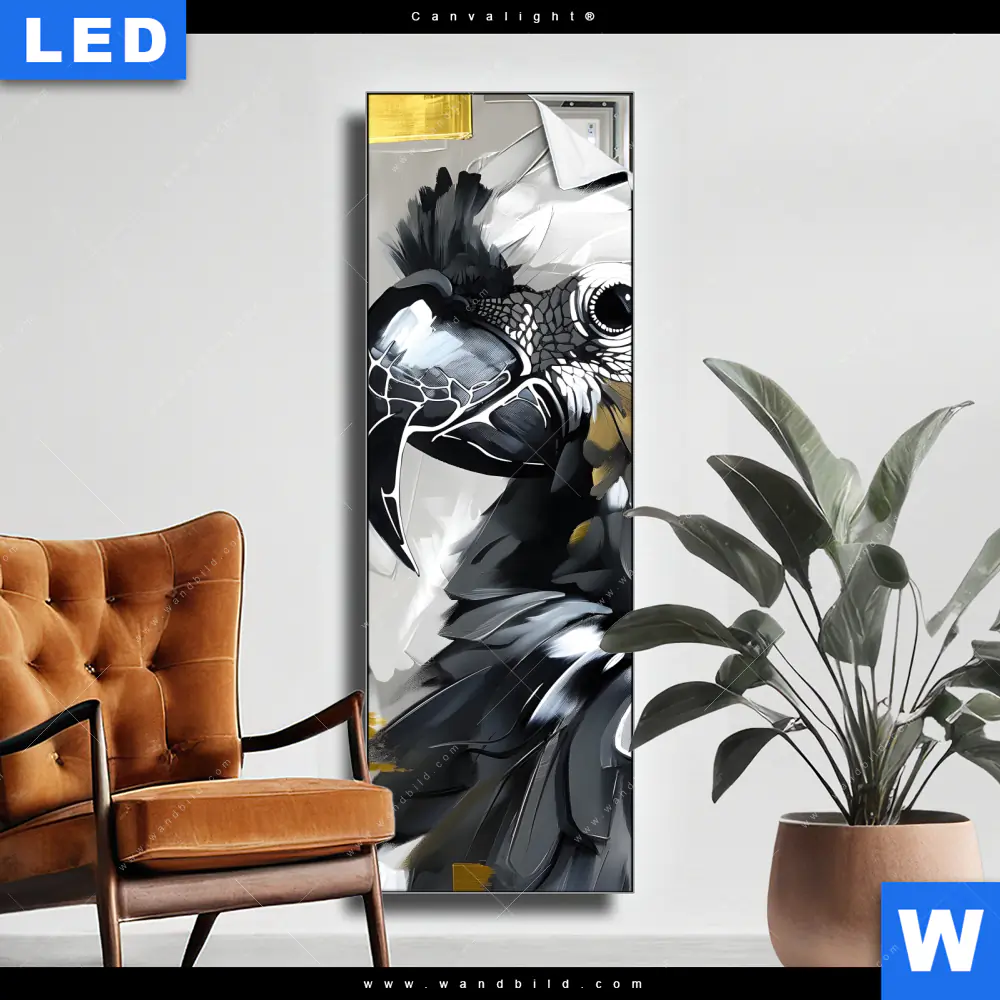 Canvalight® TEX Leuchtbild | Abstrakter Papagei mit Gold | Schmal