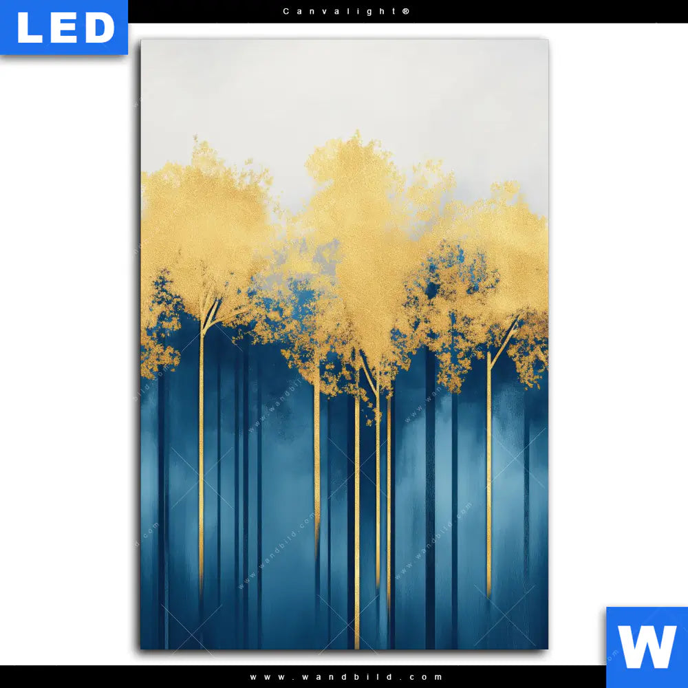 Canvalight® Leuchtbild | Abstrakter Wald - Blau & Gold | Hochformat