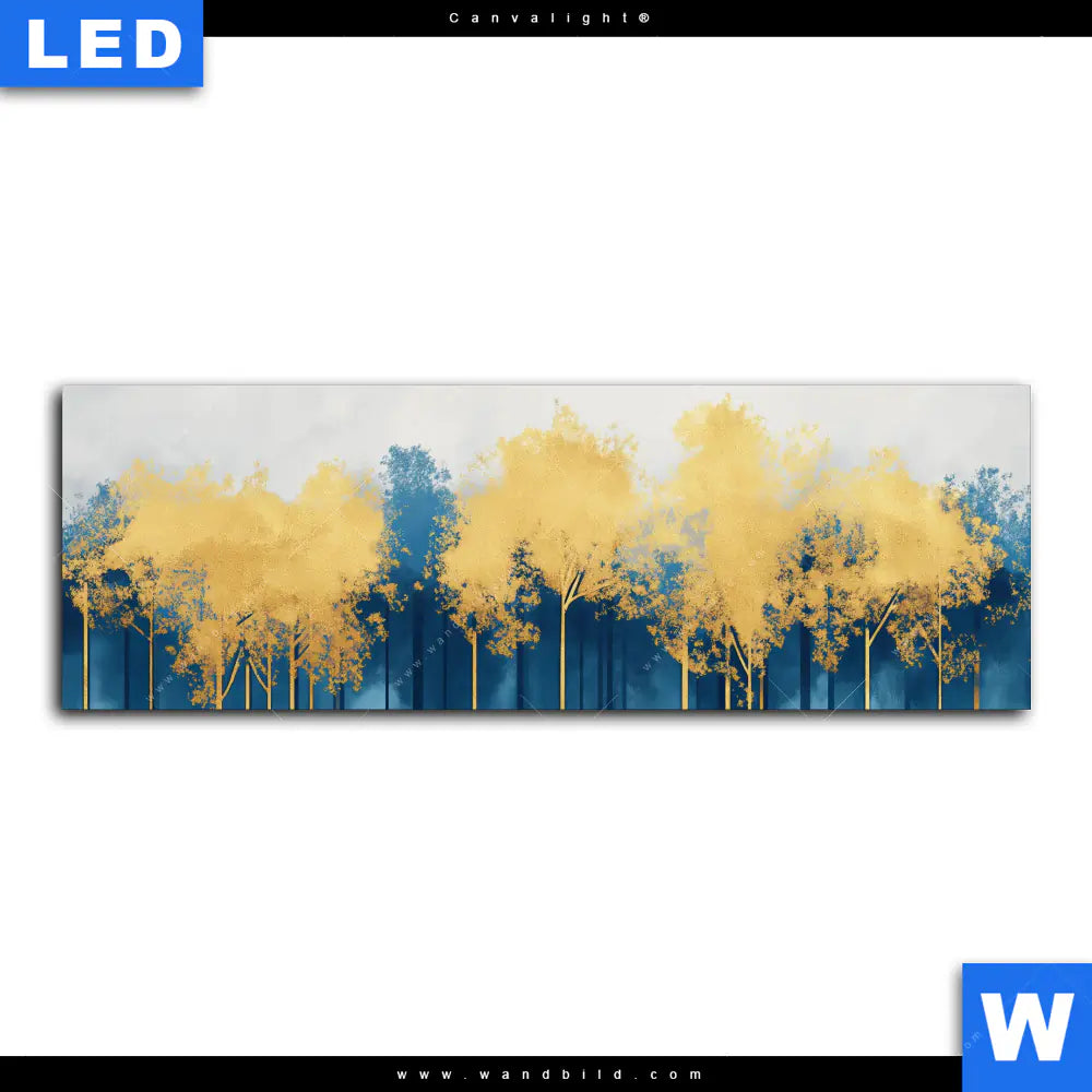 Canvalight® Leuchtbild | Abstrakter Wald - Blau & Gold | Panorama