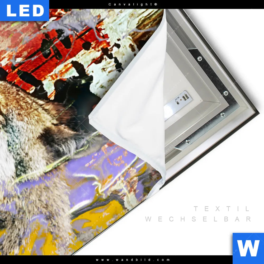 LED-Textilrahmen-Bild mit austauschbarem Tierwelt Textil-Druck (Wechselbild)