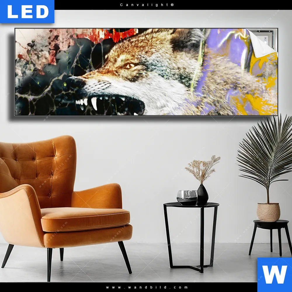 Canvalight® Leuchtbild | Abstrakter Wolf | Panorama
