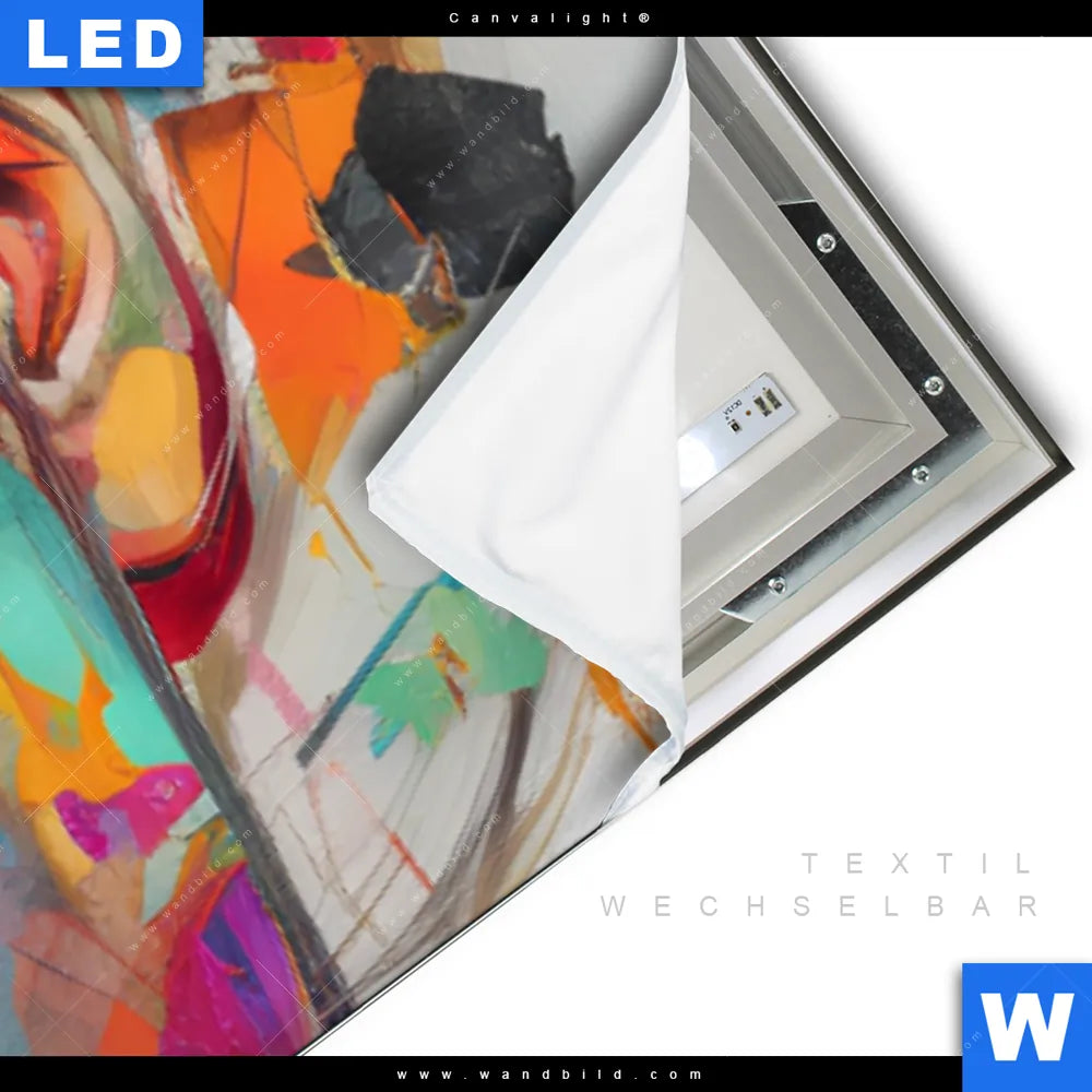 LED-Textilrahmen-Bild mit austauschbarem Porträts - Menschen Textil-Druck (Wechselbild)
