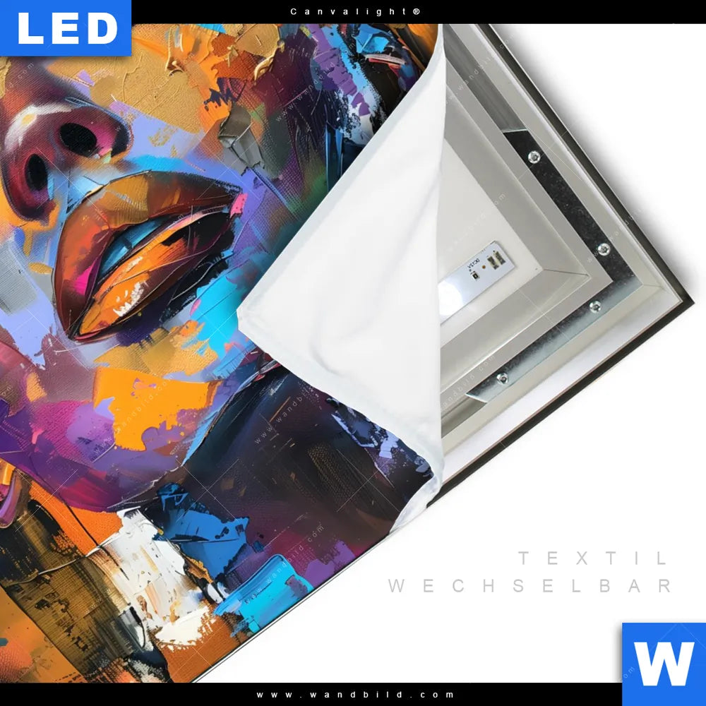 Canvalight® TEX Leuchtbild | Abstraktes Frauenporträt Dilara | Quadrat