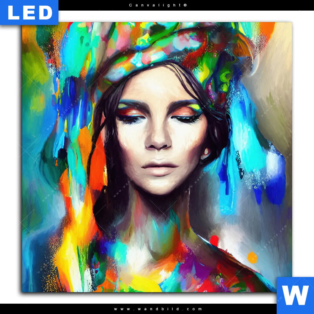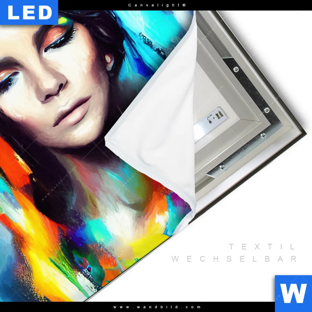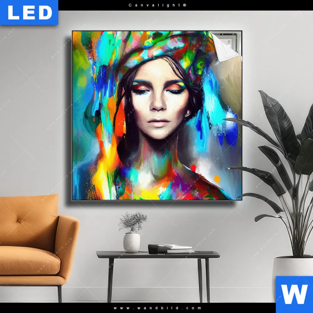 Canvalight® TEX Leuchtbild | Abstraktes Frauenporträt Scarlett | Quadrat
