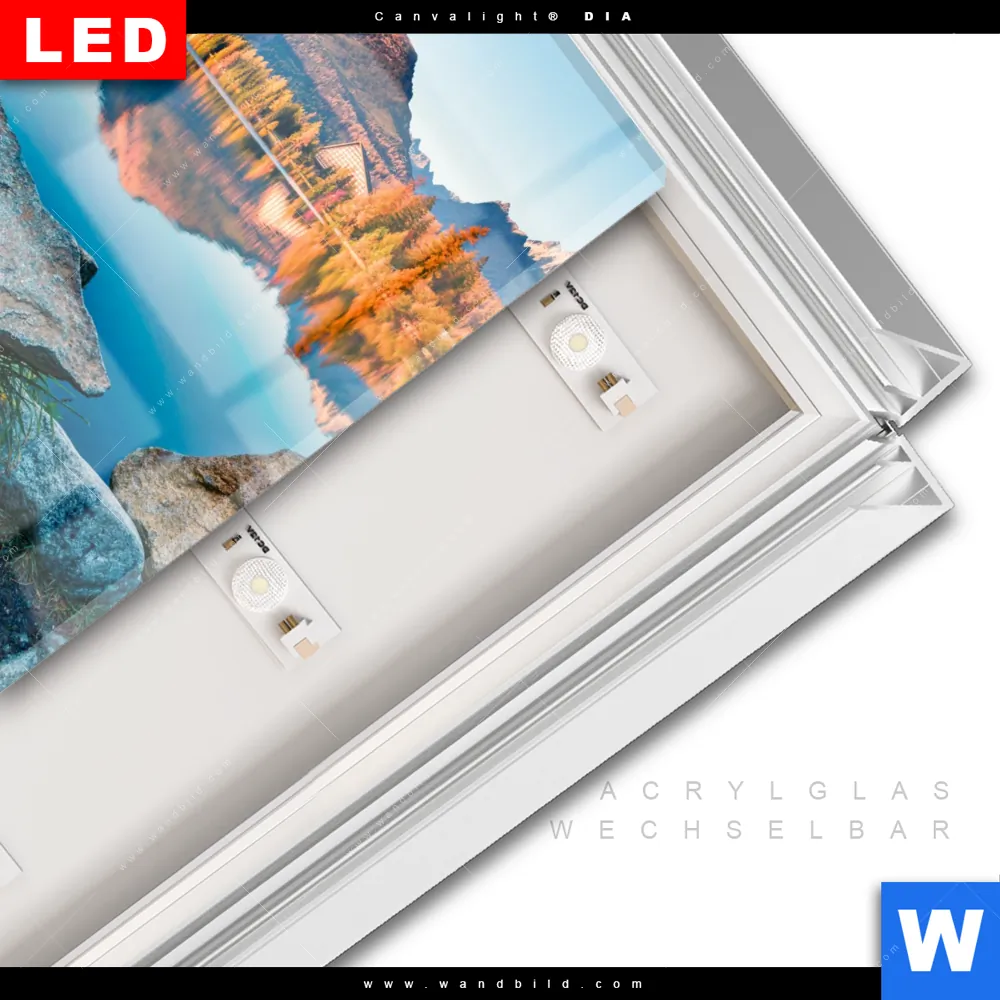 LED-Glasbild mit austauschbarem Acrylglas-Druck (Wechselbild)