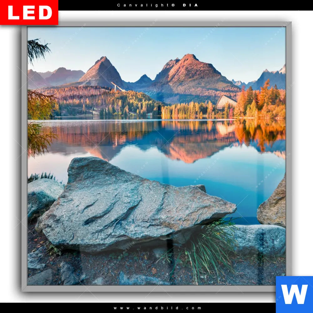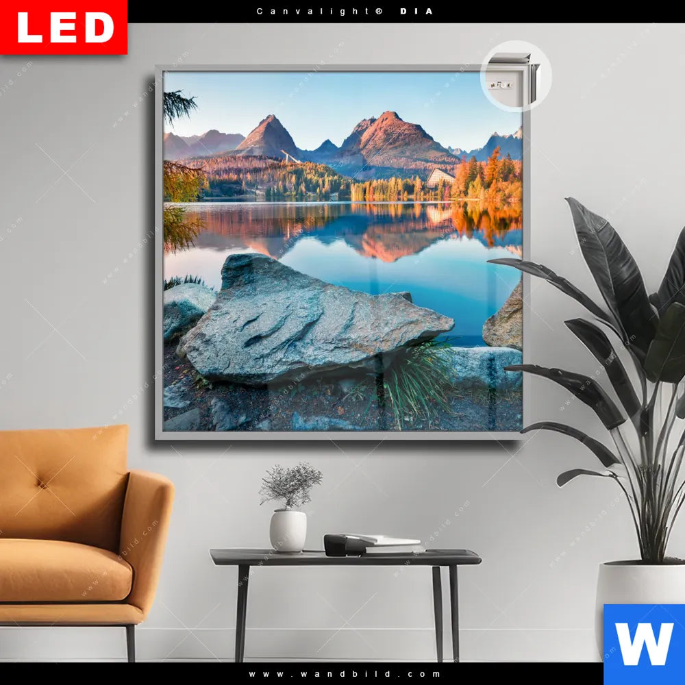 Canvalight® DIA Leuchtbild | Abendszene mit Bergen und See | Quadrat