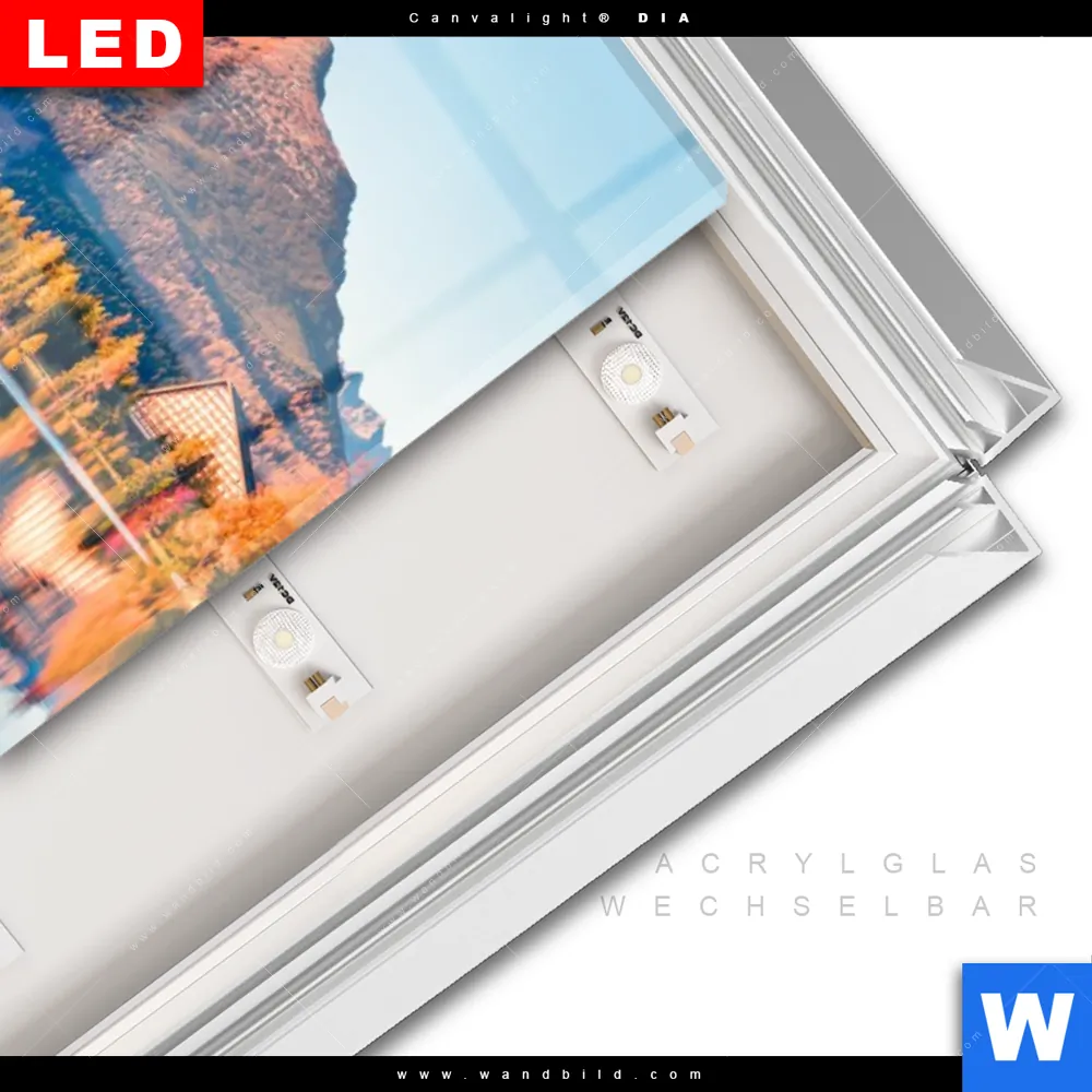LED-Glasbild mit austauschbarem Acrylglas-Druck (Wechselbild)