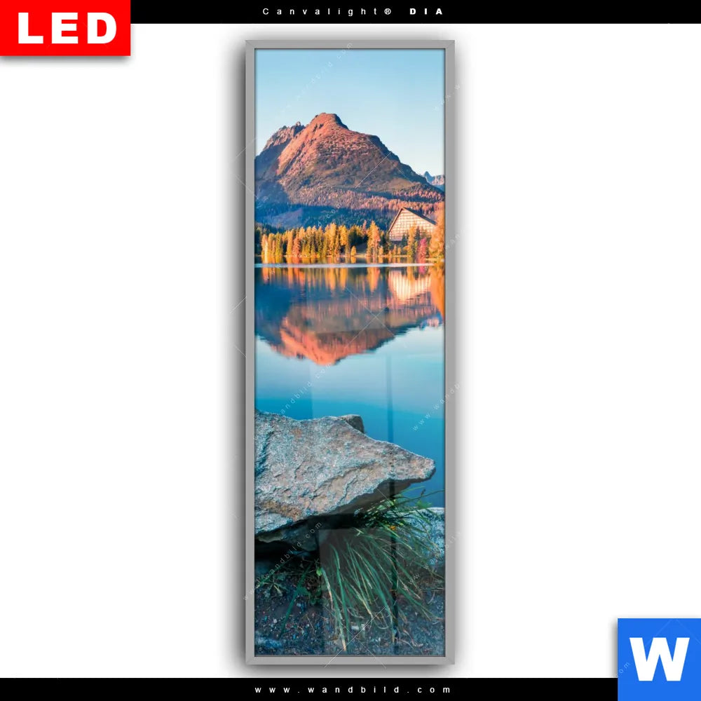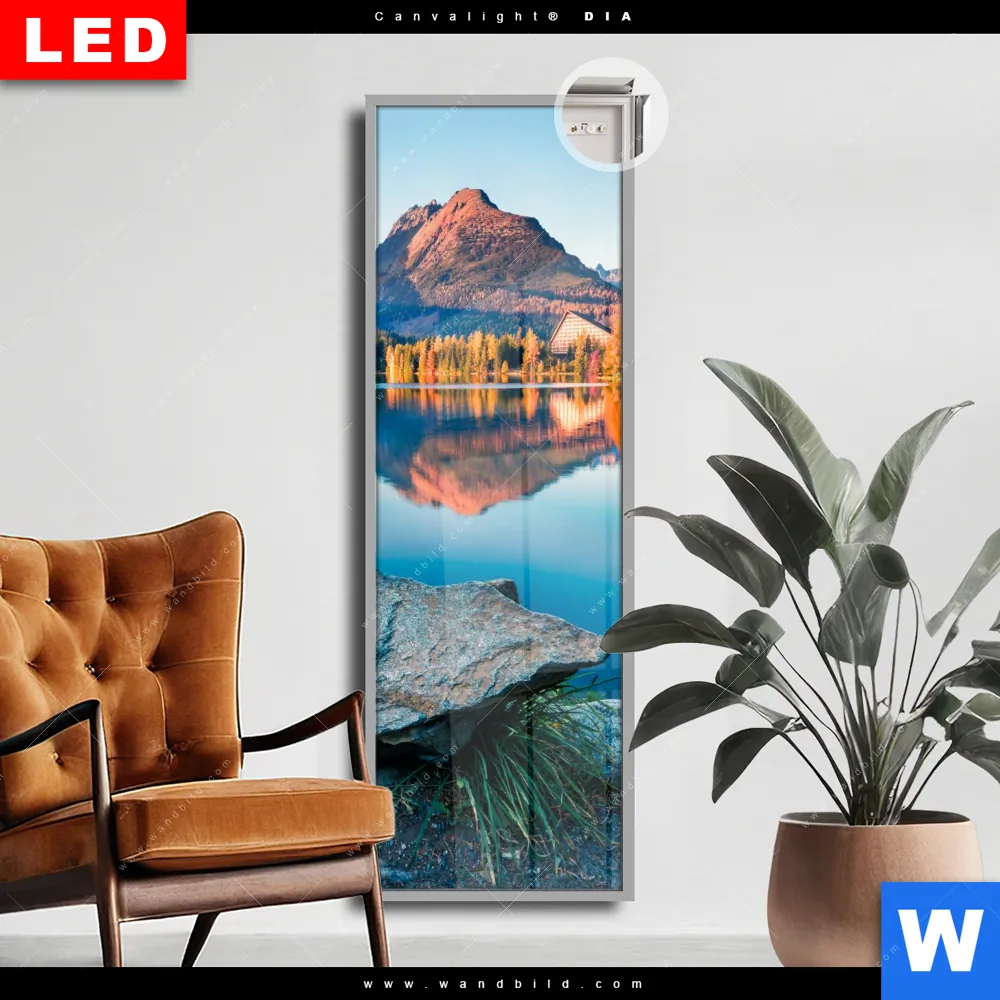 Canvalight® DIA Leuchtbild | Abendszene mit Bergen und See | Schmal