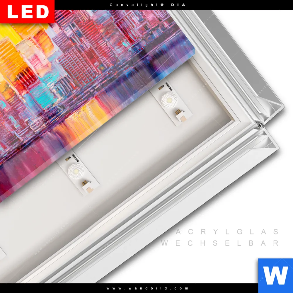 LED-Glasbild mit austauschbarem Acrylglas-Druck (Wechselbild)
