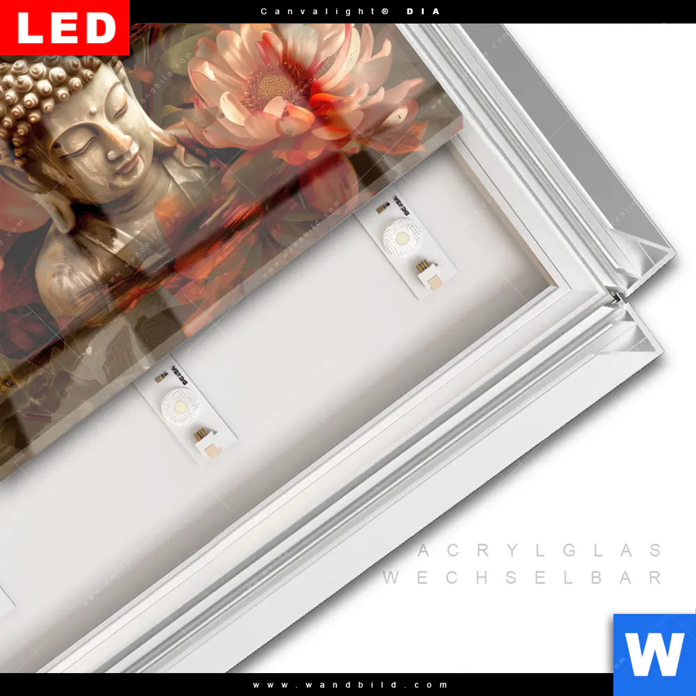 Canvalight® DIA Leuchtbild | Abstrakter Buddha & Blumen | Querformat