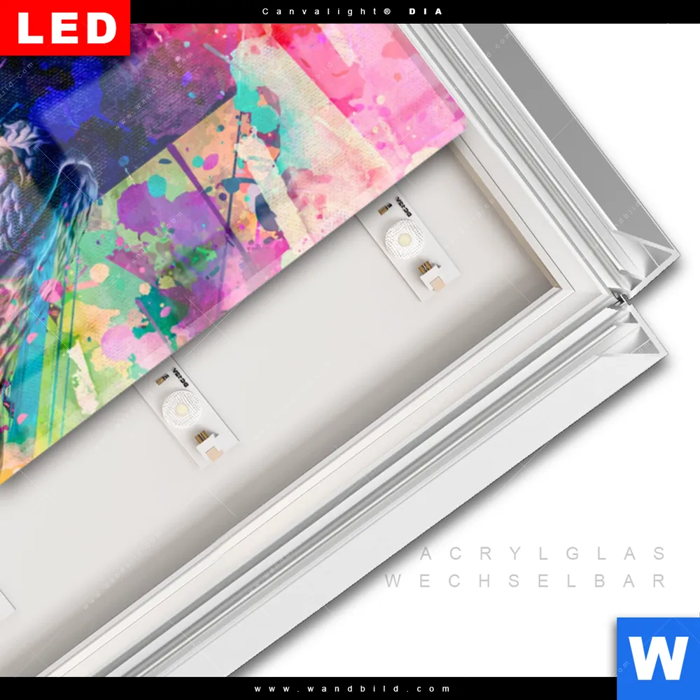 LED-Glasbild mit austauschbarem Acrylglas-Druck (Wechselbild)