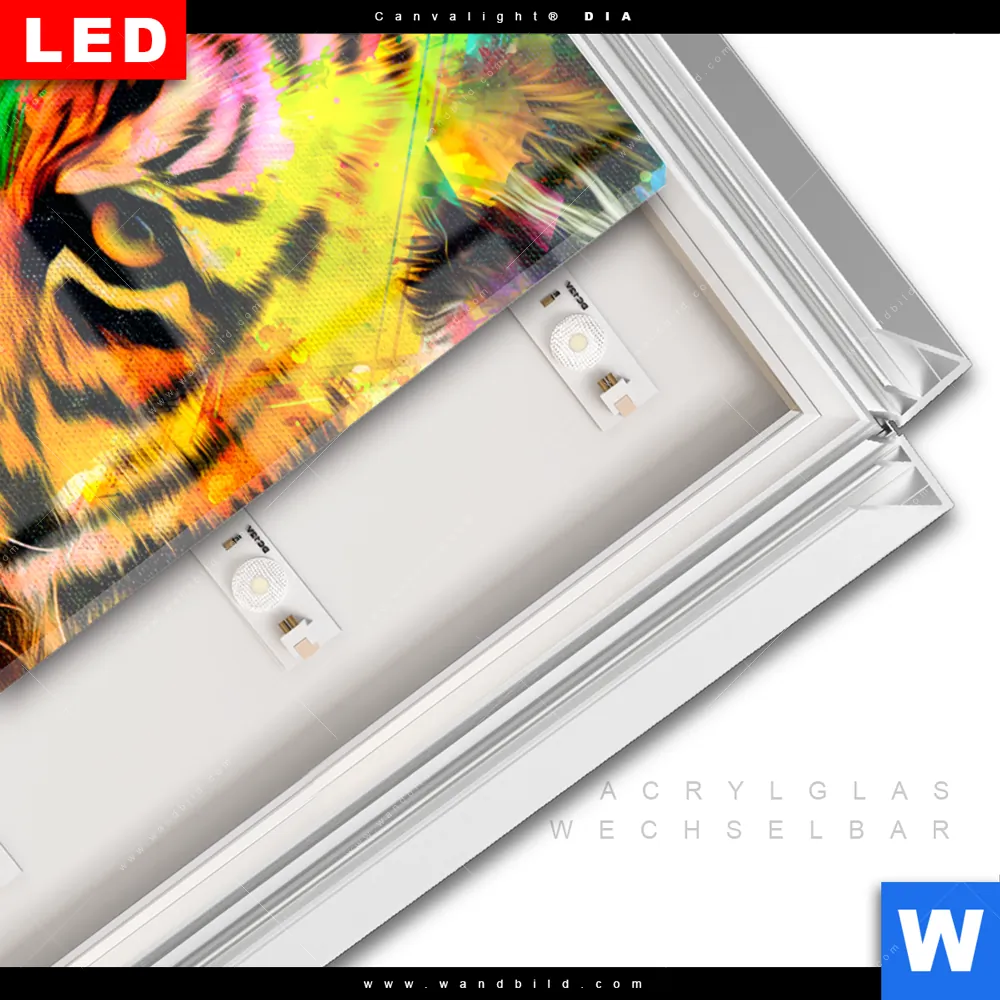 LED-Glasbild mit austauschbarem Acrylglas-Druck (Wechselbild)