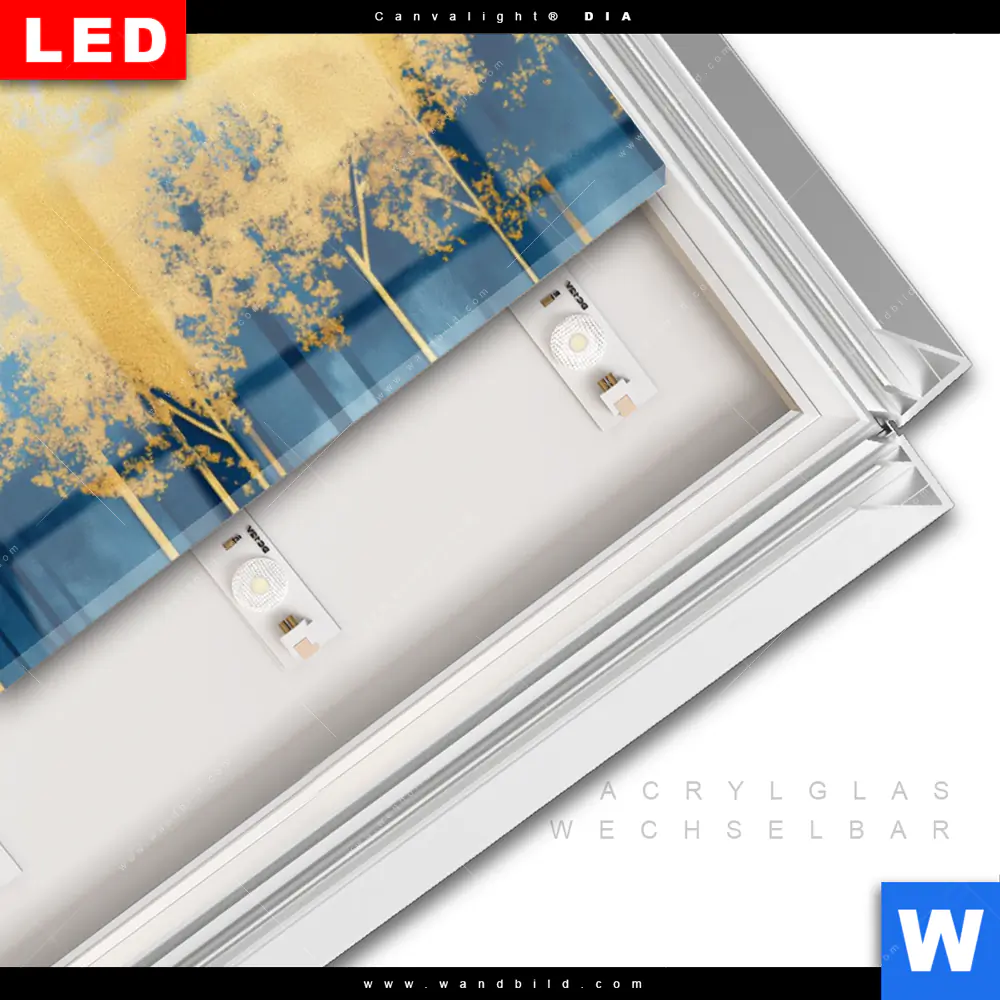 LED-Glasbild mit austauschbarem Acrylglas-Druck (Wechselbild)