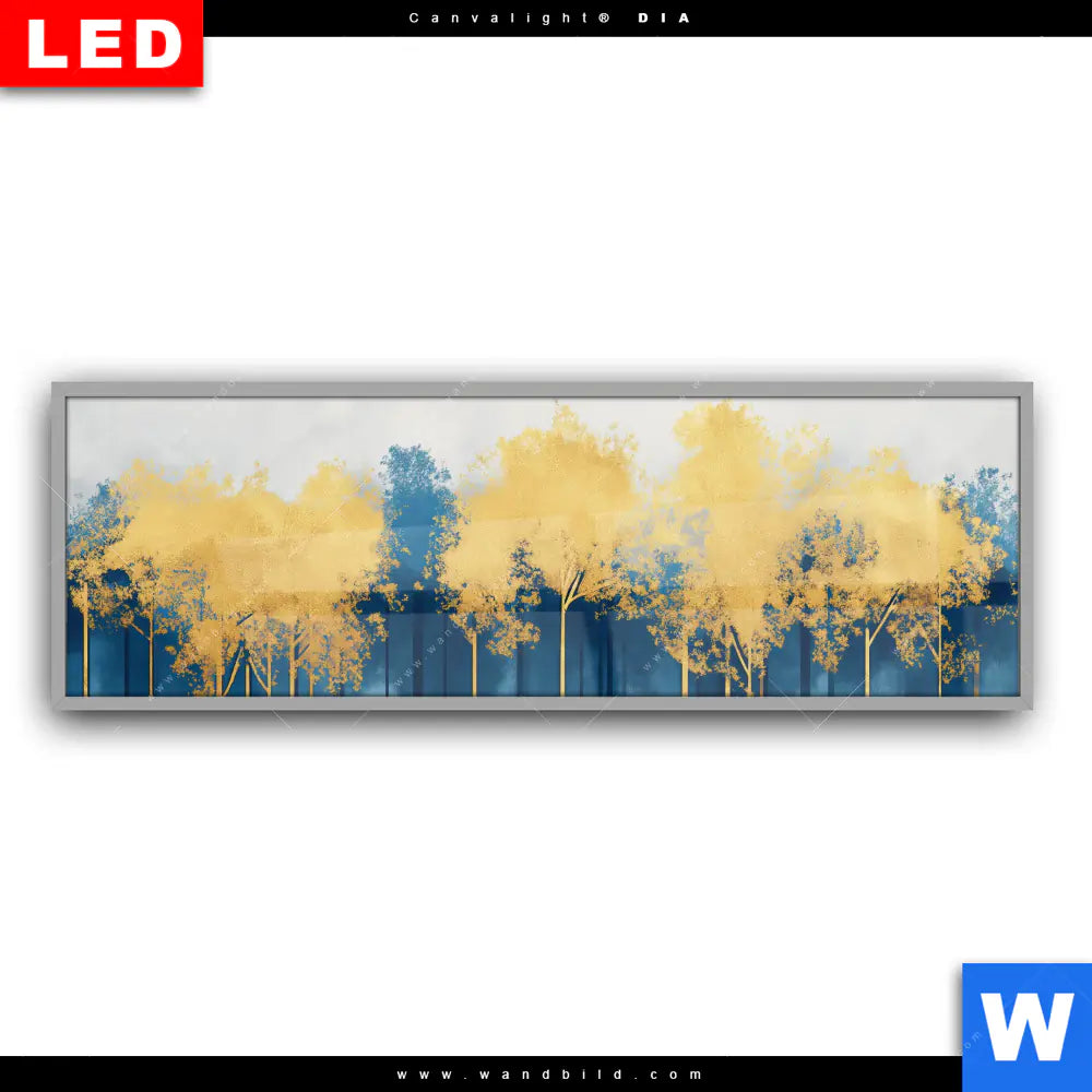 Canvalight® DIA Leuchtbild | Abstrakter Wald - Blau & Gold | Panorama