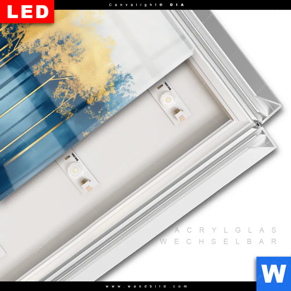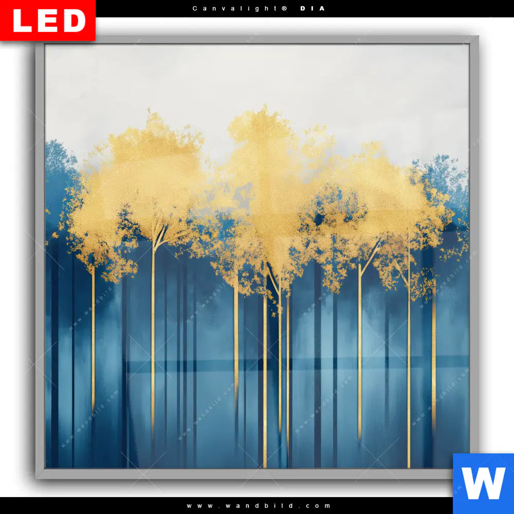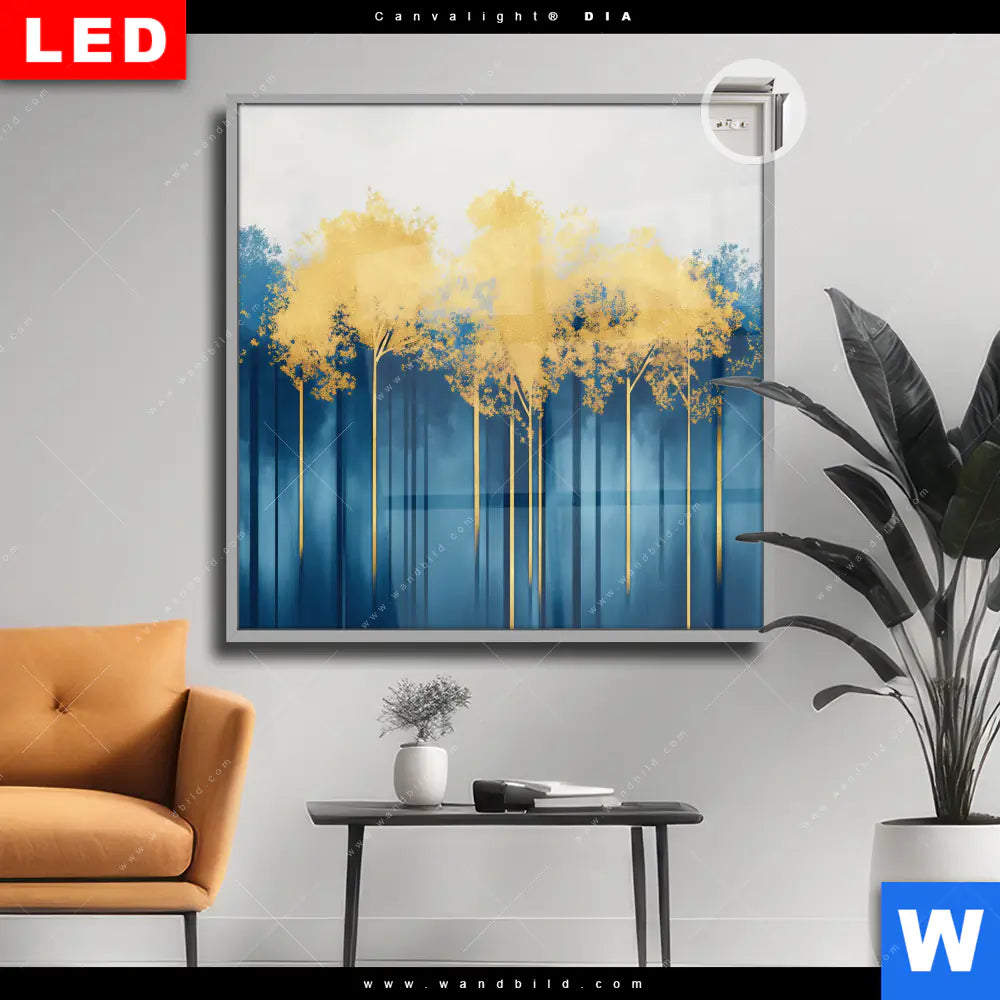 Canvalight® DIA Leuchtbild | Abstrakter Wald - Blau & Gold | Quadrat