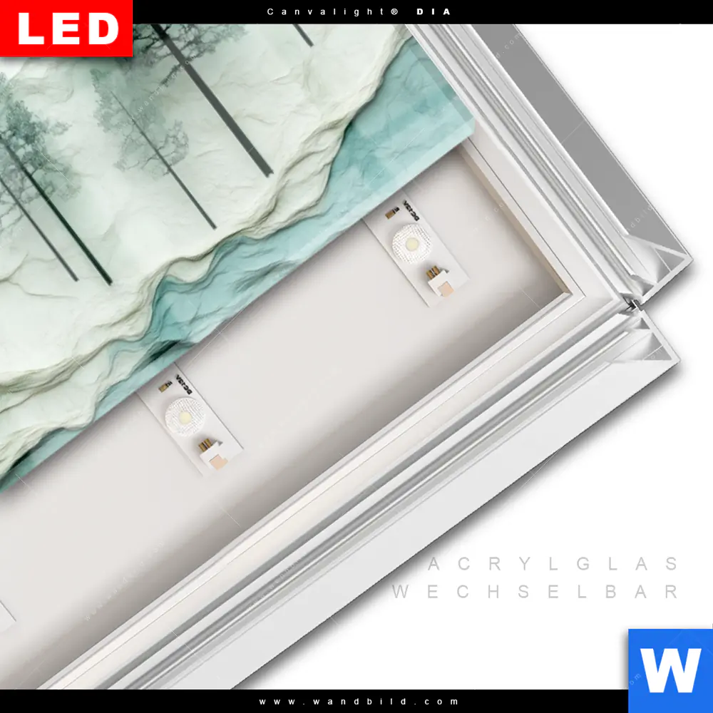 LED-Glasbild mit austauschbarem Acrylglas-Druck (Wechselbild)
