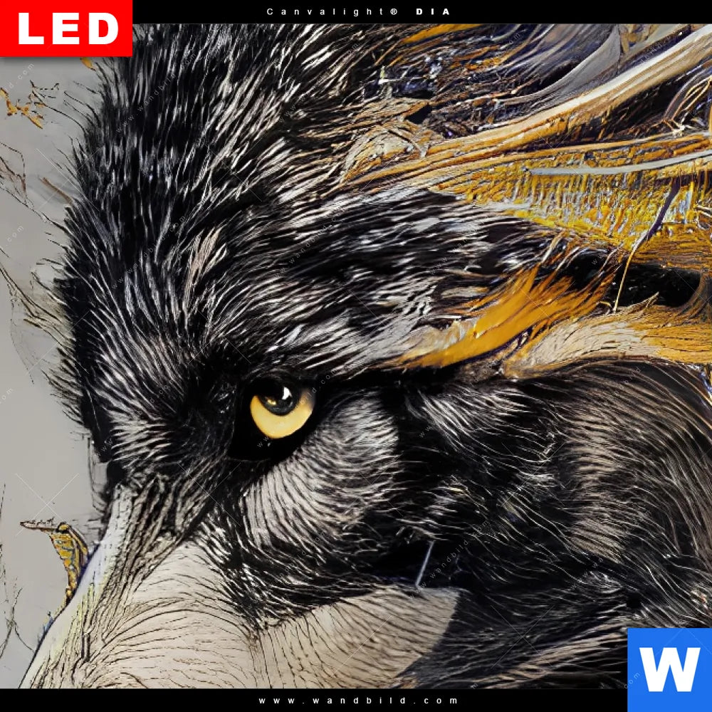 Canvalight® DIA Leuchtbild | Abstrakter Wolf in Gold und Grau | Hochformat